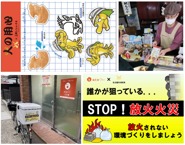 ① 元祖鯱もなか本店と連携し、コラボレーションシールを作製のうえ、期間限定で配布する「火の用心キャンペーン」を実施